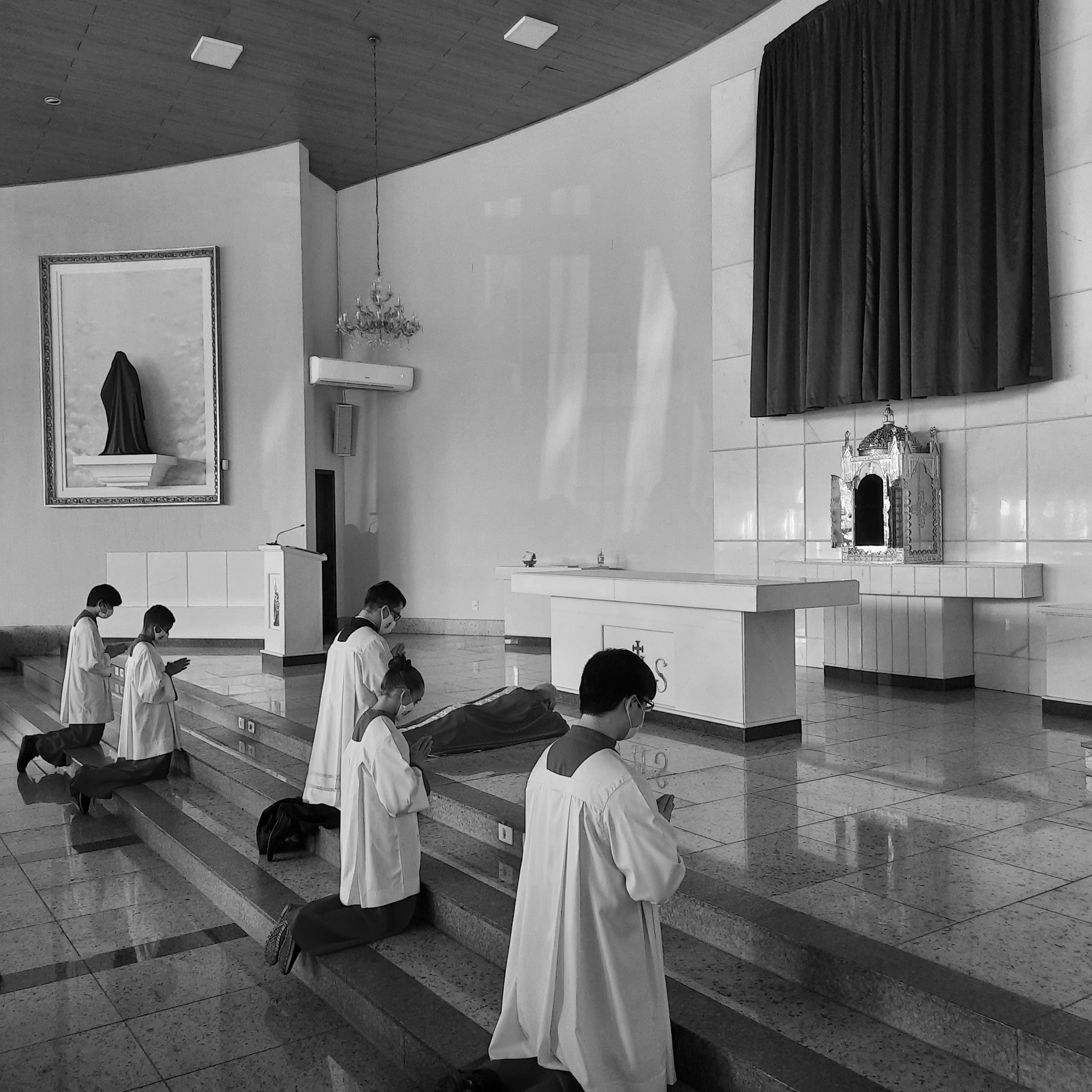 A celebração foi iniciada em silêncio com o sacerdote se prostrando no chão, diante do altar, lembrando o dia de sua ordenação e a ação do próprio Jesus que despojou-se de si mesmo e fez-se obediente até sua morte de cruz.