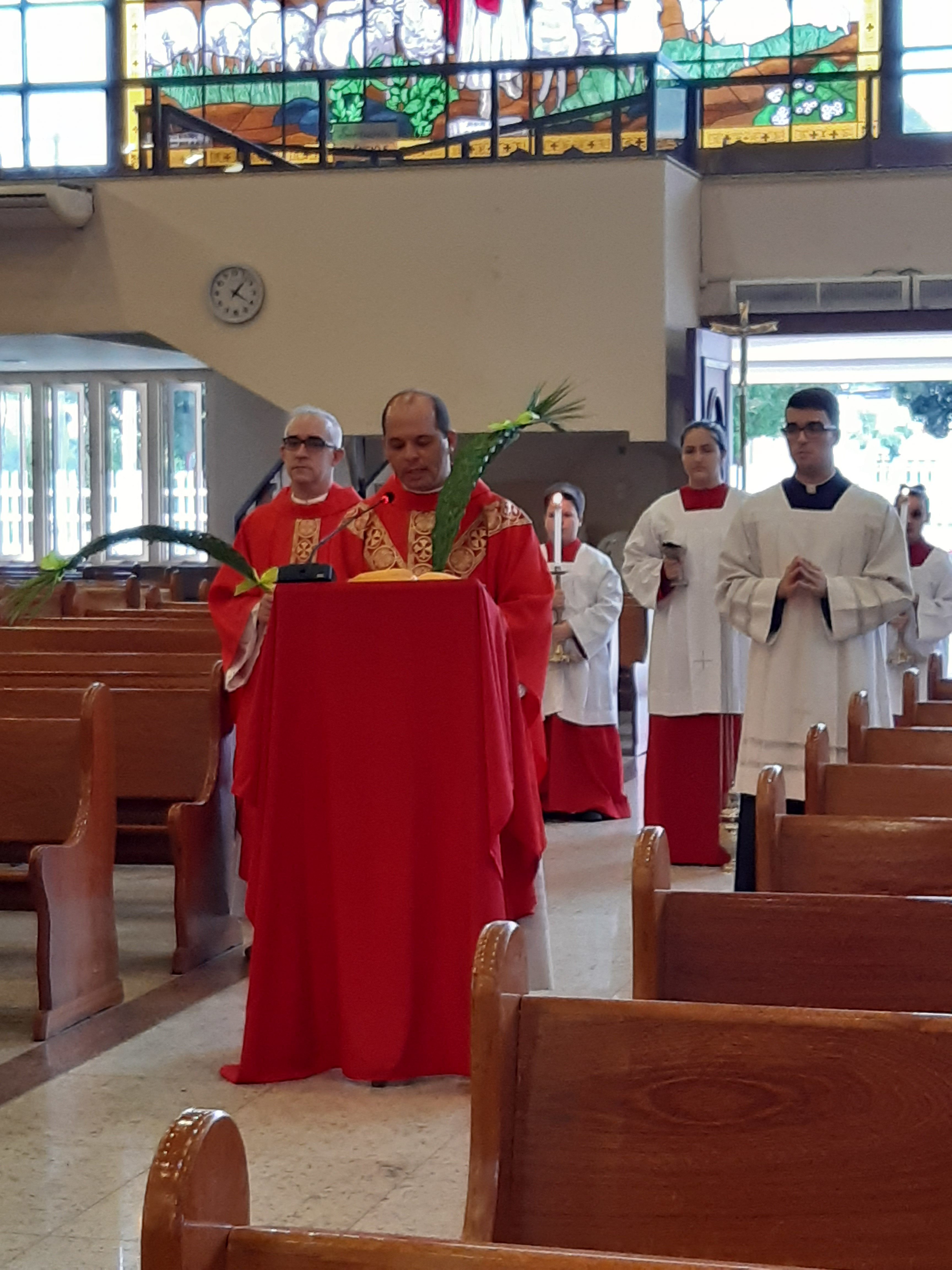 Mais tarde, às 16h, foi celebrada com muita piedade em nosso Santuário Senhor do Bonfim, a Missa Solene do Domingo de Ramos e da Paixão do Senhor, que foi transmitida pelo Facebook e Instagram da Paróquia. Em sua homilia, Pe. Fernando nos motivou a nesta Semana Maior, diante de tantas situações adversas, diante de todas as incertezas e contradições, olhemos para a Cruz, olhemos para o Amor Maior, olhemos para a caridade de Deus para conosco.