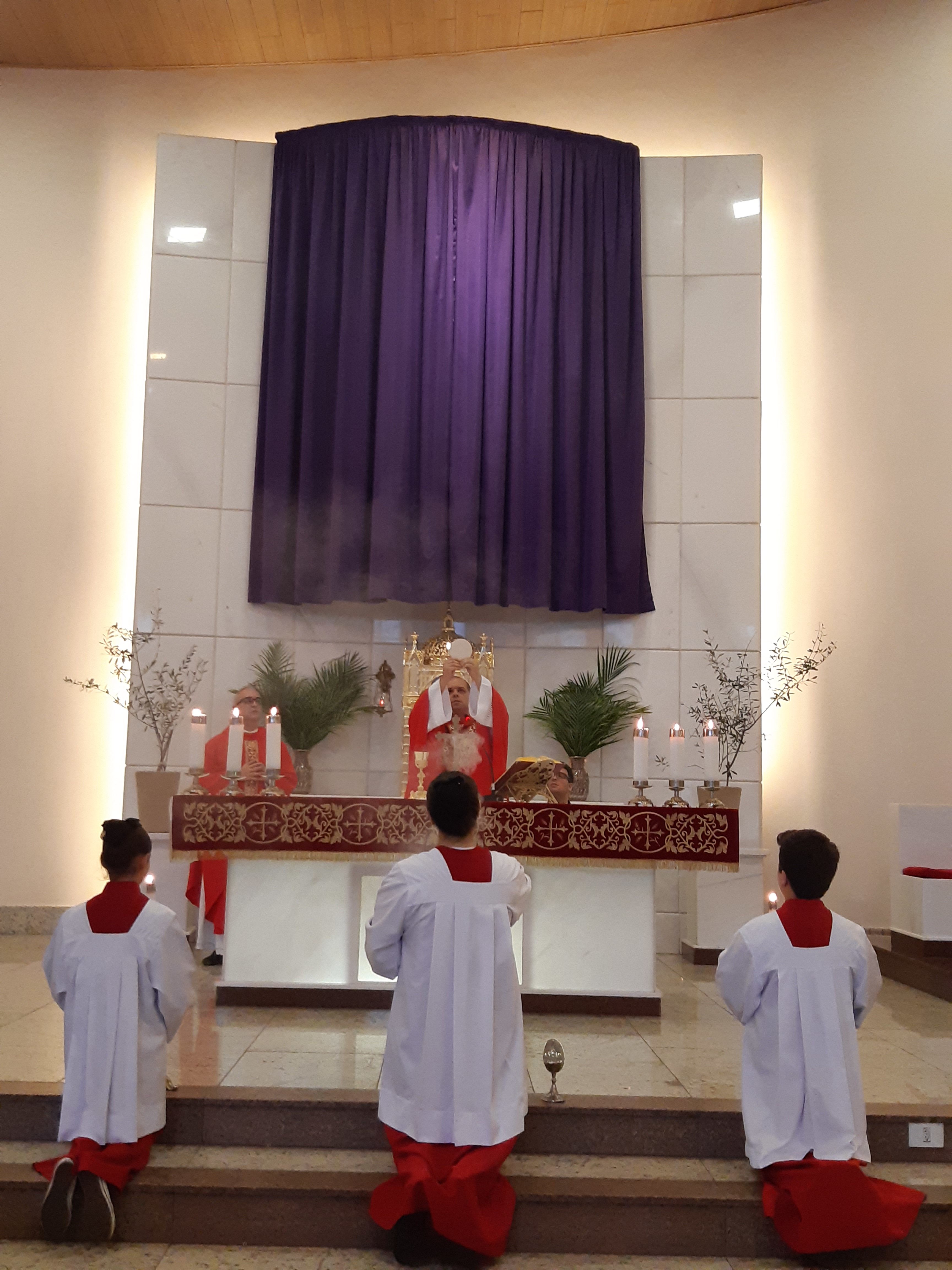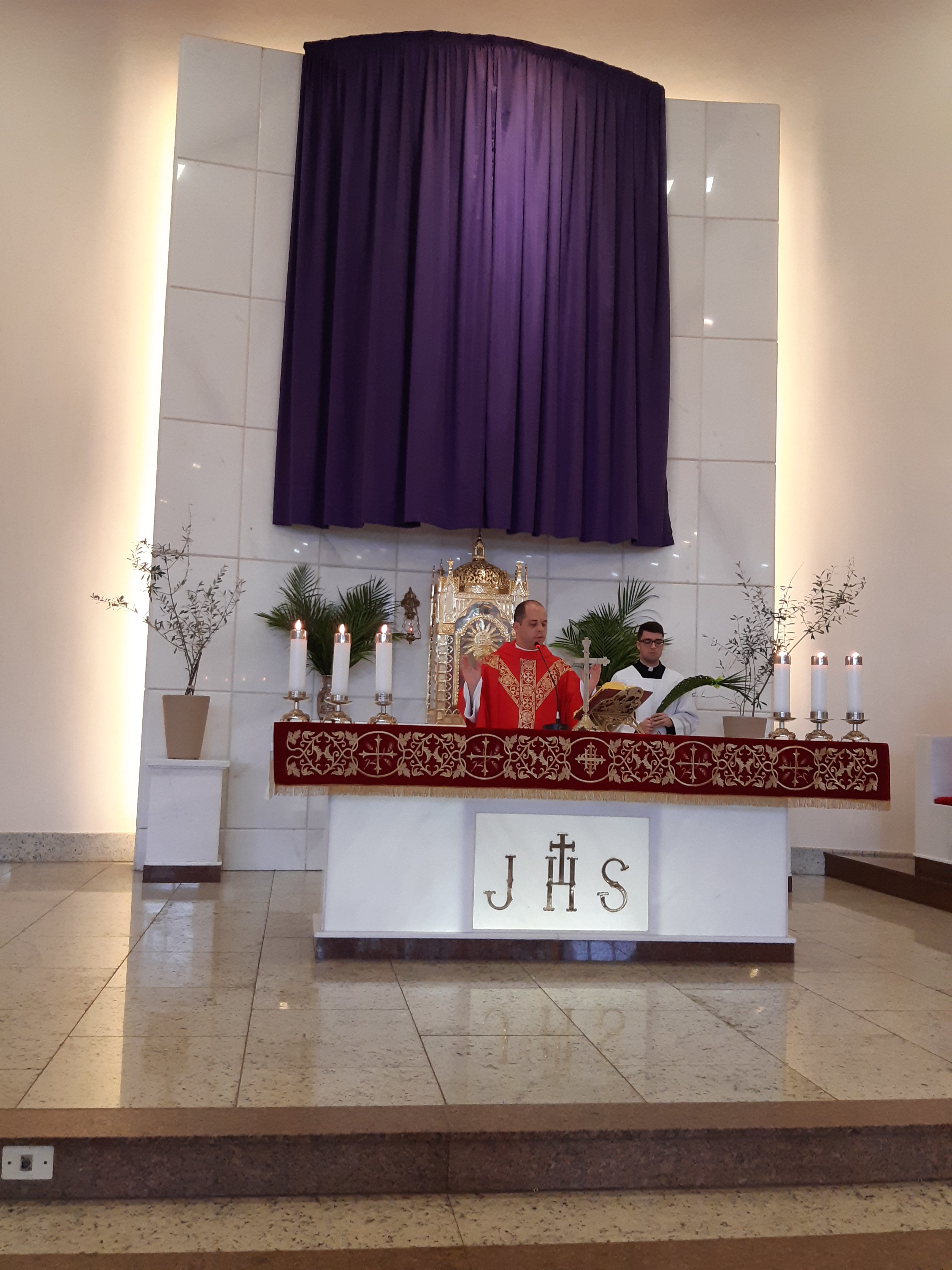 Diante do salmo do dia, o pároco nos pediu que mesmo se rezarmos “meu Deus, meu Deus por quê me abandonastes”, porque humanamente seja esta nossa oração nestes dias, também rezemos “vinde logo Senhor, não fiqueis longe, o Senhor é minha força, vinde logo em meu socorro”, pois assim celebraremos a vitória da vida sobre a morte, e assim celebraremos a vitória da graça sobre o pecado. Ao final, Pe. Fernando manifestou seu carinho por todos os paroquianos e desejou a todos uma abençoada Semana Santa.
