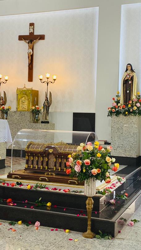 A Paróquia Senhor do Bonfim em Ipatinga recebeu a visita das relíquias de Santa Teresinha do Menino Jesus, no dia 24 de junho de 2024. A urna peregrina, onde estão os ossos da santa, chegou ao Brasil em fevereiro e visitará 70 cidades do país. Fêmur e ossos do pé da santa foram trazidos da Basílica de Santa Teresa, em Lisieux, na França e a jornada no Brasil inclui visitas a casas e conventos das Carmelitas em diversas regiões.