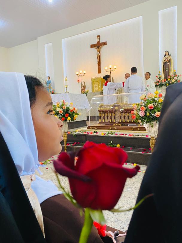 Cumprindo a tradição católica de venerar relíquias, sinais da passagem de homens e mulheres exemplares na vivência da fé pelo mundo, a Paróquia Senhor do Bonfim viveu 2 dias de fervorosas manifestações da fé à Santa Teresinha. Os fiéis acompanharam a chegada às 18h do dia 24 de junho num desfile da urna em carro aberto em direção ao Santuário Senhor do Bonfim no bairro Cidade Nobre. As relíquias foram recebidas com muita devoção e pétalas de rosas seguida de Santa Missa celebrada pelo bispo emérito Dom Odilon e concelebrada pelos padres Fernando, Efferson, Willian Pires, José Ricardo, Willian e Geraldo Ildeu. Às 21h desse mesmo dia o ministério de música da Paróquia conduziu um momento orante musical num tributo à Santa Teresinha, e às 22h30 aconteceu a Santa Missa com bênção das rosas presidida pelo Pe. José Ricardo, abrindo a noite de oração e veneração dos fiéis às sagradas relíquias, que se estendeu por toda a noite no Santuário Senhor do Bonfim.